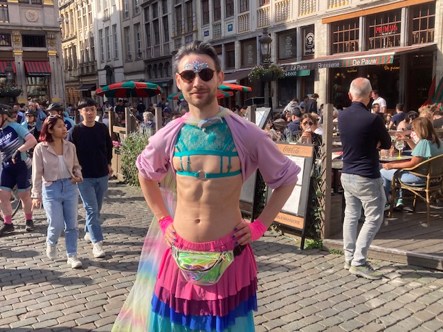 Ook Konstantin Brandt uit Hannover in Duitsland heeft een uitgesproken mening. Hij vindt dat er nu onder Trump en door andere conservatieve leiders wat tegenwind is op de LGBTQIA-gemeenschap. Hij merkt wel dat de gemeenschap door het grote publiek meer en meer wordt geaccepteerd en dat alles veel meer genderneutraal is. Hij vertelt ook dat hij zichzelf identificeert als biseksueel of pan-seksueel. Hij heeft al meerdere prides in verschillende steden en landen meegemaakt. “Het evenement in Brussel is echt leuk”, zegt hij. “Ik merk wel dat het meer een dorpssfeer is in vergelijking met bijvoorbeeld Pride Berlin of Pride Keulen. Ik vind dat het meer verdeeld en diverser is en dat toeristen zich ook erin mengen, wat ik eigenlijk wel grappig vind.”