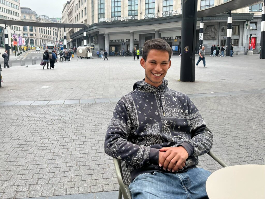 Ik ben van Brussel, ik woon in Sint-Gillis bij de Marollen. Ik skate graag, hou van muziek en teken ook af en toe. Mijn droom is om een soort ruimte te creëren in de natuur waar elektriciteit is, water, wijn, honing en olijfolie. Om een soort gemeenschap te creëren waar je kunst kan maken en gelukkig en vrij kan leven, ver weg van de chaos hier.