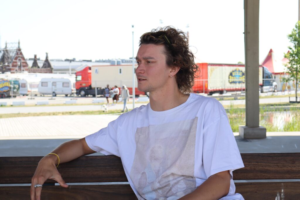 De jonge acteur begeleidt ons op zijn gemak naar een bankje onder de luifel achter het imposante Tour & Taxis-gebouw in Brussel. Een oude man rust er langs de kant van het water. Het is een rustige plek, midden in de stad, net afgelegen genoeg om even te ontsnappen aan de drukte, een plek die goed lijkt te passen bij de acteur die tegenover ons zit.