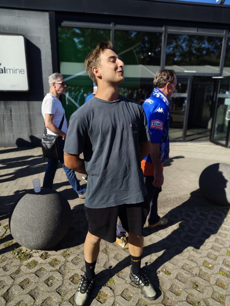 Ik trek naar de laatste twee thuiswedstrijden van Racing Genk met de vraag: Welk gevoel overheerst bij de supporters? Net voor de wedstrijd tegen Club Brugge spreek ik met Arne Duhamel, een supporter van Genk: “Het seizoen begon goed, en we sloten de reguliere competitie af met een comfortabele voorsprong. Daarna liep het in de Champions’ Play-offs plots gans verkeerd; de ene wijt dit aan scheidsrechterlijke beslissingen, de andere aan een vertrouwensdip bij de spelers. Voor mij is de derde plek uiteindelijk een mooi resultaat. Mijn algemene conclusie is dat er meer mentale veerkracht in dit jonge team moet komen om voor de titel te strijden.”