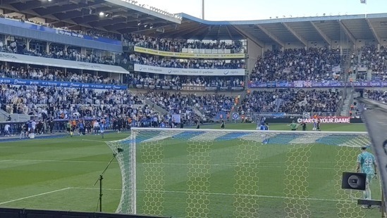 Ik geniet zelf enorm van de sfeer. Ondanks het 0-2 verlies dansen en zingen de supporters doorheen de hele wedstrijd. De enige keer dat ze zich negatief uitlaten is wanneer de scheidsrechter het veld betreedt. Die maakt zich niet populairder door een Genkse verdediger in de eerste helft een – terechte – rode kaart te geven.