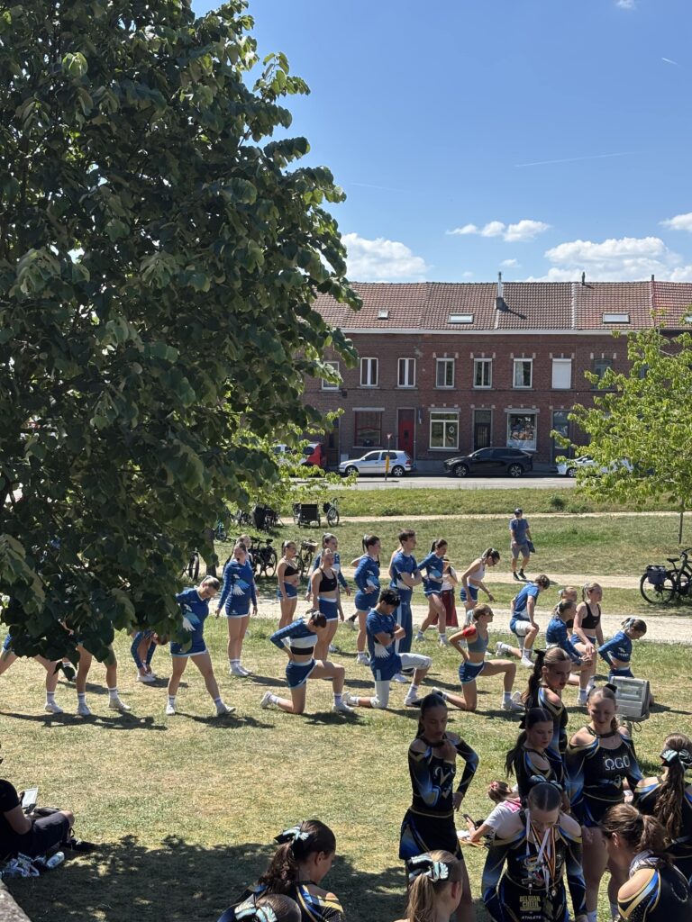De zon schijnt fel, weerkaatsend op alle glinsterende pakjes en de glanzende pompons die in een kleurrijke waas bewegen. De Philipssite in hartje Leuven bruist van leven en energie van atleten die klaar zijn op erop los te dansen en turnen. Op de omliggende grasvelden van het terrein oefenen de teams voor een laatste keer de choreografieën, met een breed publiek van trotse ouders, vrienden en vriendinnen. Achter de bomenrij vliegen zelfs enkele meisjes de lucht in, geconcentreerd maar sierlijk. Het Belgische Kampioenschap Cheerleaden is begonnen, en iedereen is er klaar voor.